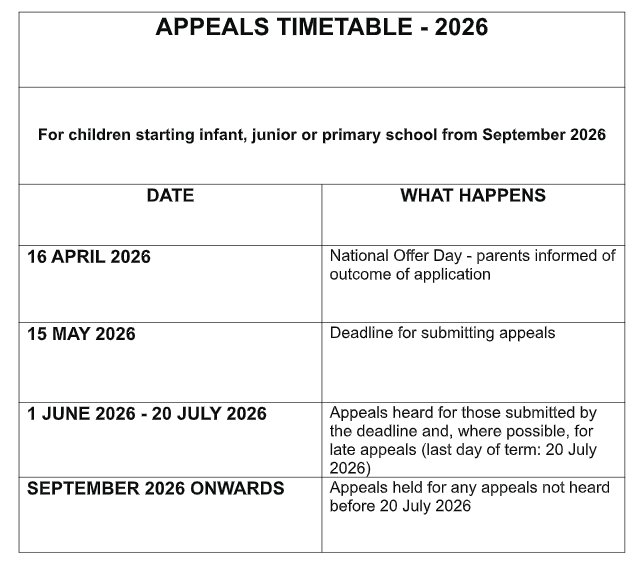 Appeals Timetable