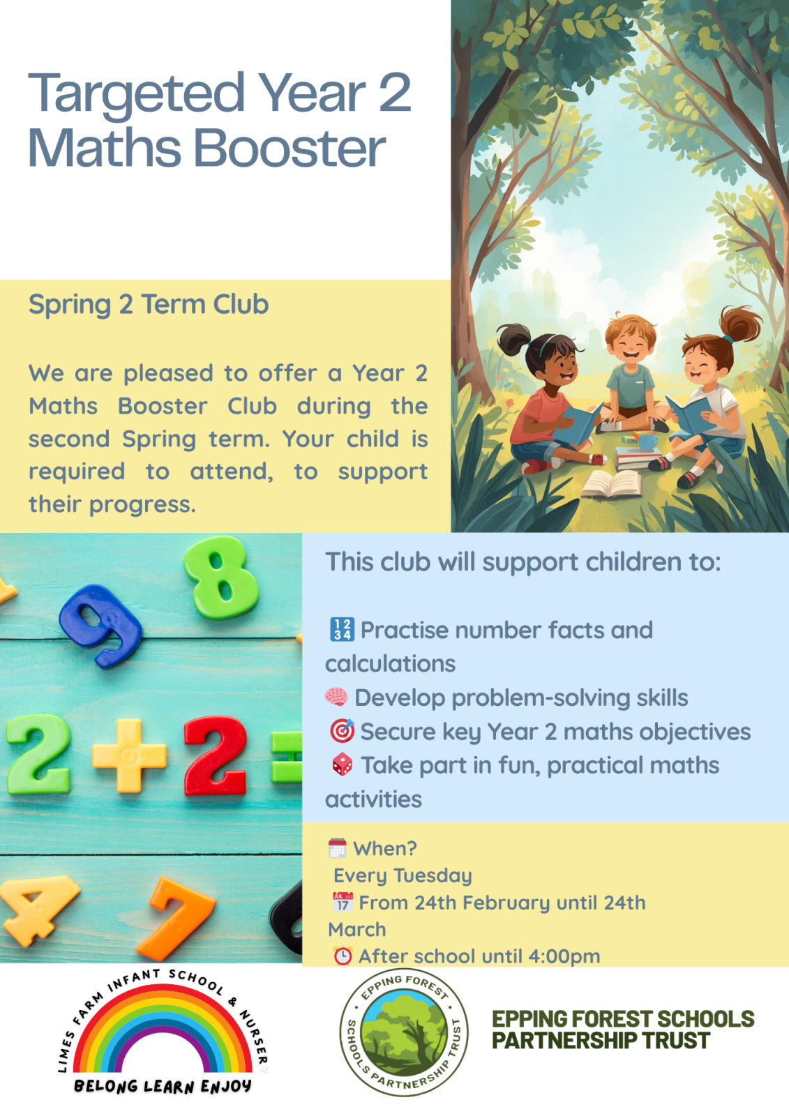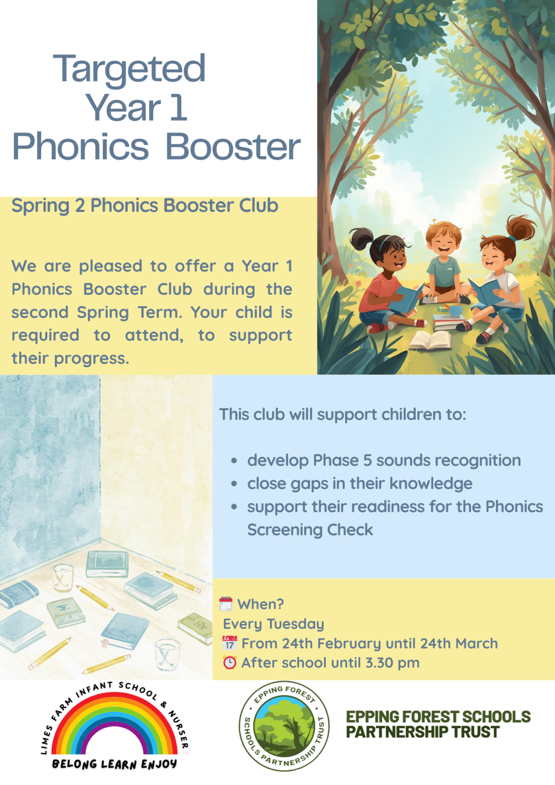 This half term we are offering a range of booster classess in Reception, Year 1 and Year 2